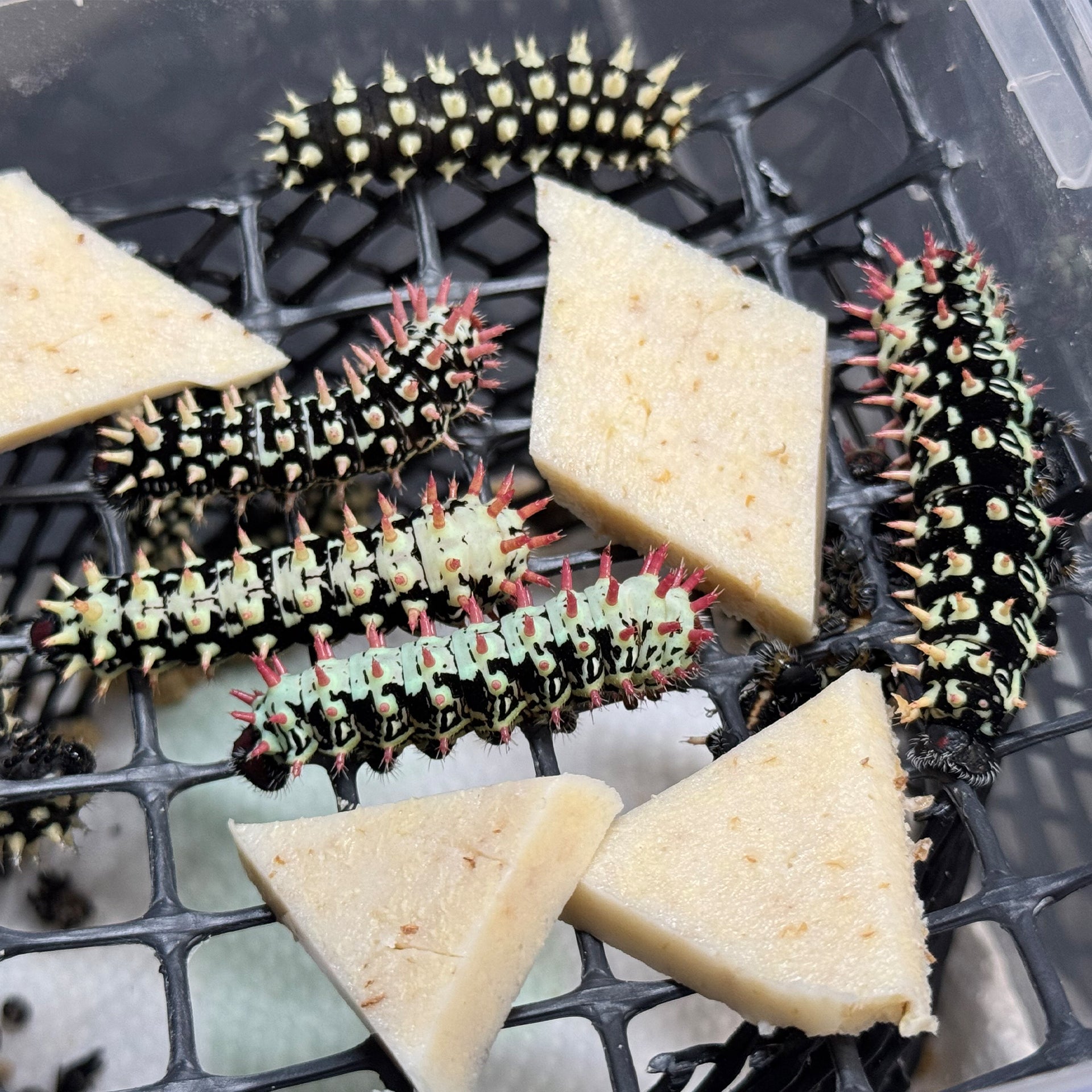 Balanced nutrients and firm texture designed specifically for Saturniids ensuring healthy growth and good cocoon formation.